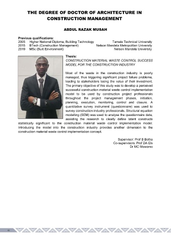 THE DEGREE OF DOCTOR OF ARCHITECTURE IN CONSTRUCTION MANAGEMENT 44